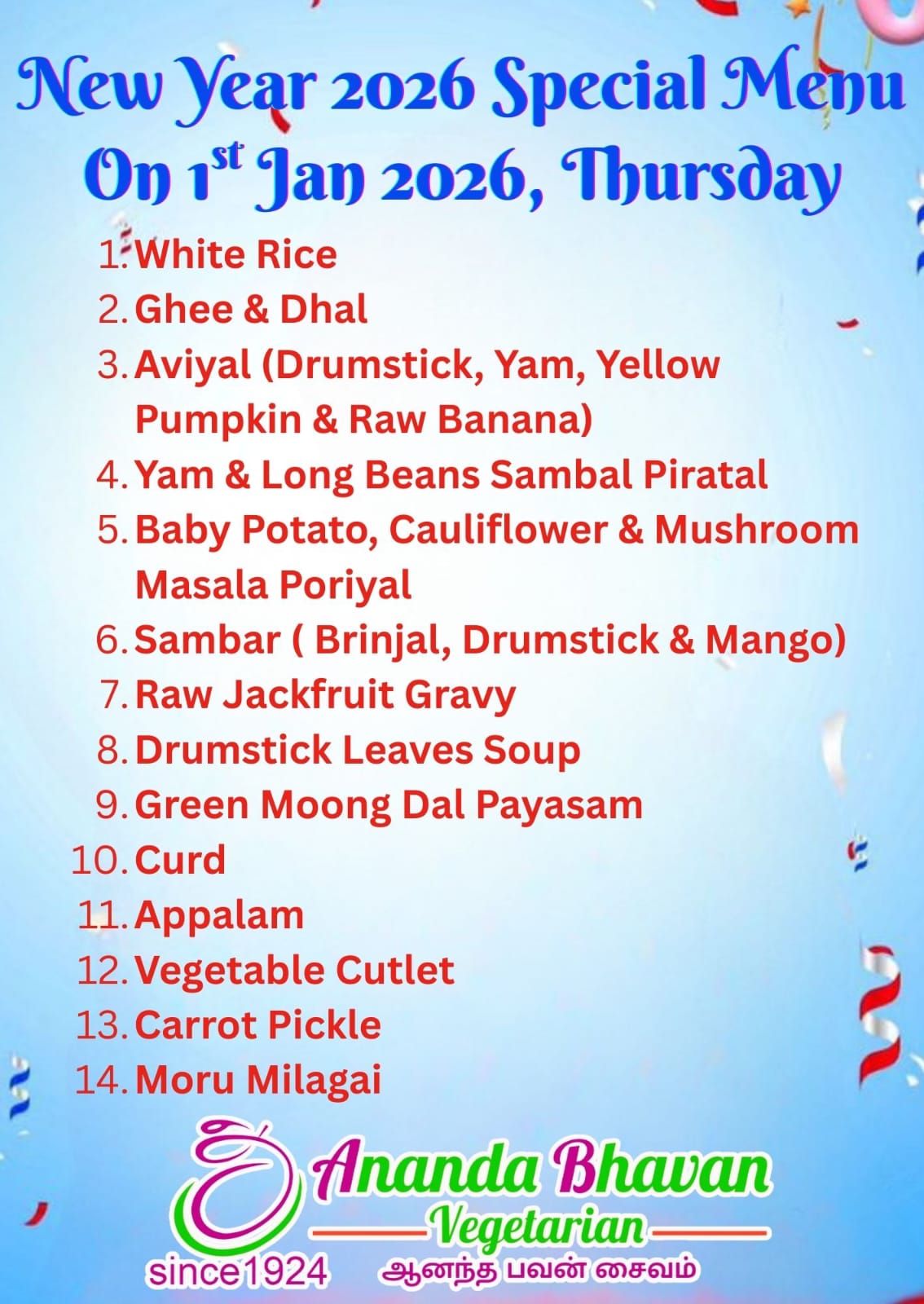 Thanks for ordering with Ananda Bhavan!